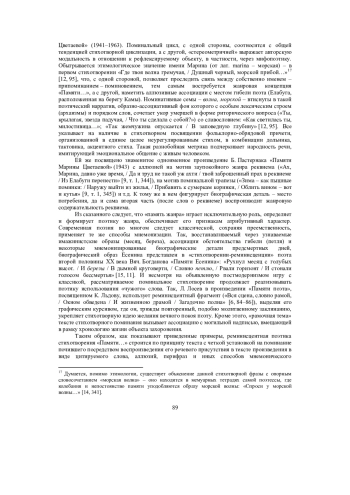 Стихотворение «Памяти…» неоднократно становилось предметом изучения в трудах современных исследователей. Так, Д. Н. Ахапкин весь комплекс лирических текстов с типическими номинативами «Памяти…» и «На смерть…» сводит в отдельную группу «стихотворений in memoriam, которые имеют сходную тематику и структуру и могут быть описаны как отдельное жанровое образование» [2, 123].