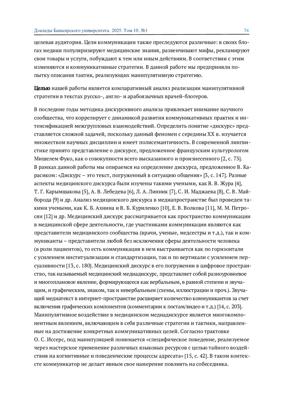 12. Петросян М. М. Основные коммуникативные стратегии и тактики медицинского медиа-дискурса (на мат-ле русского и армянского языков) // Дискурс профессиональной коммуникации. 2024. Т. 6. №2. С. 62-81. DOI: 10.24833/2687-0126-2024-6-2-62-81 EDN: FZXIWM