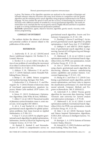 11. Xiaobing Y. An improved gravitational search algorithm for global optimization / Y. Xiaobing, Y. Xianrui, C. Hong //j.Intell. Fuzzy Syst. - 2019. - Vol. 37. - P. 50395047.