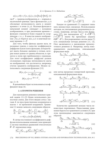 1. Borisenko G. V. A diffusion method for image filtering and sharpening / G. V. Borisenko, A. M. Denisov, A. S. Krylov // Programming and Computer Software. - 2008. - Vol. 34. - № 5. -P. 267-270,. DOI: 10.1134/S0361768808050034 EDN: LLLAZB