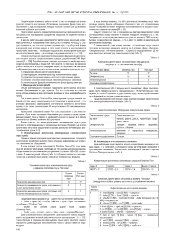 Статья, выполненная на материале современных французских телесериалов Christmas Flow и Plan Caur, представляет собой описание алгоритма анализа синонимики французских арго, включающего такие компоненты, как систематизация неконвенциональных лексем и экспликация функций арготических синонимов. В ходе изучения особенностей синонимики в телесериалах рассмотрены также семантические сферы, концентрация и способы семантизации неконвенциональных синонимов. В статье вводятся в научный оборот понятия «доминирующий синонимический блок», «концентрация арготических синонимов», «центральный арготизм синонимического ряда», «плотность арготических синонимов». Результаты, полученные в ходе исследования, могут быть использованы как для разработки учебных курсов по социолингвистике и лексикологии французского языка, так и для дальнейшего лексиграфирования компонентов специфического лексического континуума.