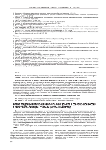 Данная статья посвящена анализу новых тенденций изучений миноритарных языков. Рассмотрены новые тренды при изучении уязвимых языков (онлайн-обучение, мобильные приложения для изучения языков, формат смешанного обучения, межкультурное обучение, использование технологий искусственного интеллекта, использование социальных сетей и интернет-сообществ в вопросе продвижения и популяризации миноритарных языков, вовлечение культурных аспектов в процесс изучения языков). Также в представленном научном труде сообщается о роли цифровизации, которая способствует созданию хранилищ языковых материалов, что положительно сказывается на сохранении и продвижении миноритарных языков. Проанализирован геймифицированный метод изучения языков меньшинств в качестве передовой технологии в вопросе языкового освоения. Представлен проект виртуальной школы абазинского языка «Абаза ажва» в качестве примера геймифицированного метода в цифровом пространстве. Сделаны выводы, что использование новых трендов при изучении языков малочисленных этносов может положительно сказаться на сохранении языкового разнообразия как части нематериального культурного наследия России.