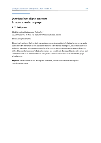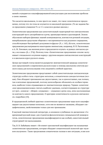 5. Воробьева Е. Н. Теория эллиптических предложений в отечественной русистике: систематический обзор // Филологические науки. Вопросы теории и практики. 2023. Т. 16. №9. С. 3019-3027. EDN: EPVDJS