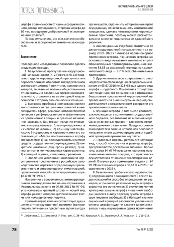 7. Лобанова Л. В., Погосян А. Р. Проблемы обеспечения уплаты штрафа, назначенного за преступления, предусмотренные ст. 290-291.1 УК РФ // Уголовное право. 2015. № 4. С. 38-45.