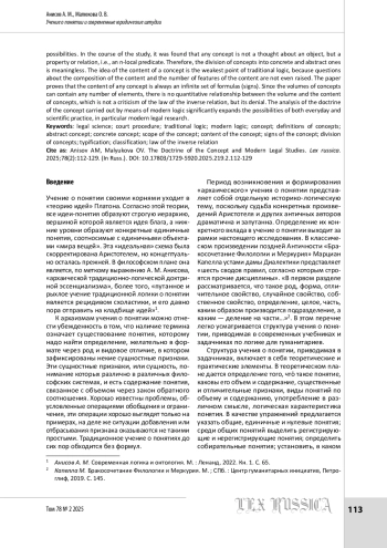 В современных юридических исследованиях активно используется логическая информация устаревшего типа. В статье показано, что традиционная логика в принципе не способна к адекватному анализу понятий-отношений, что резко сужает ее возможности. В ходе исследования было установлено, что любое понятие не является мыслью об объекте, а представляет собой свойство или отношение, т. е. n-местный предикат. Следовательно, деление понятий на конкретные и абстрактные лишено смысла. Представление о содержании понятия — самое слабое место традиционной логики, ибо вопросы о составе содержания, количестве признаков содержания даже не ставятся. В статье доказывается, что содержание любого понятия — это всегда бесконечное множество формул (признаков). И поскольку объемы понятий могут содержать любое количество элементов, то никакой количественной связи между объемом и содержанием понятий не существует, что представляет собой не критику закона об обратном отношении, а его отрицание. Проведенный средствами современной логики анализ учения о понятии существенно расширяет возможности как обыденной, так и научной практики, в частности современных юридических изысканий.