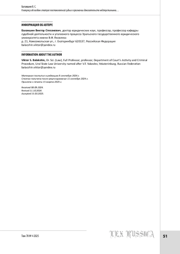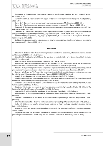 2. Балакшин В. С. Неплохо для кого?! или К вопросу о порядке признания доказательств недопустимыми // Российская юстиция. 2022. № 3. С. 19-20.