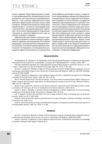 3. De Vries J., Landouré G., Wonkam A. Stigma in African genomics research: Gendered blame, polygamy, ancestry and disease causal beliefs impact on the risk of harm // Social Science & Medicine. 2020. Vol. 258. https://doi.org/10.1016/j.socscimed.2020.113091.
