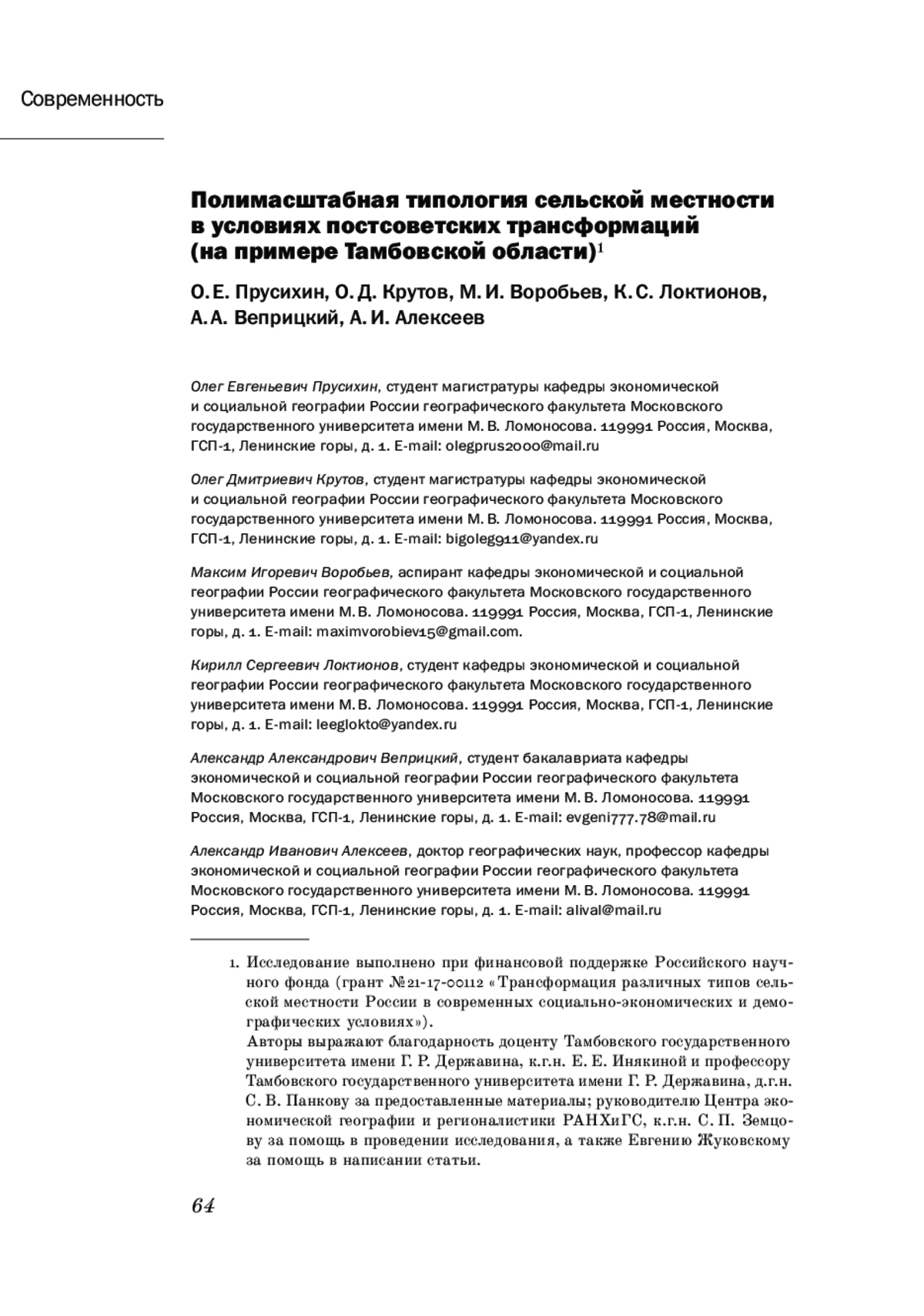 34. Ткаченко А. А., Фомкина А. А., Шаврин В. Н. (2013). Районные системы расселения Центральной России // Вопросы географии. № 135. С. 270-288. EDN: TUXNZJ