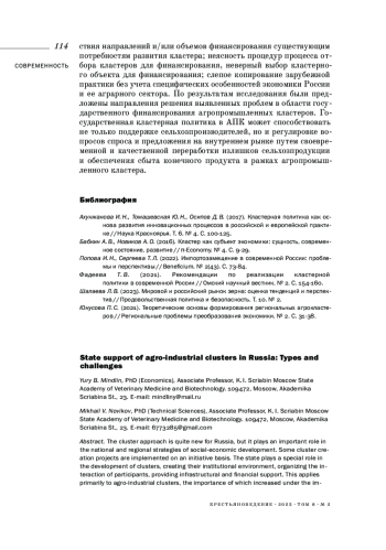 Появившись в России относительно недавно, концепция кластерного подхода в настоящее время заняла важное место в стратегии социально-экономического развития страны и ее регионов. Ряд проектов по созданию кластеров осуществляется в инициативном порядке. Государство играет особую роль в развитии кластеров, формируя их институциональную среду, организовывая взаимодействие участников, обеспечивая инфраструктурную и финансовую поддержку. Это касается в первую очередь агропромышленных кластеров, значение которых возросло в условиях стимулирования импортозамещения после пандемии коронавируса и активного введения антироссийских санкций. В данной статье обзорного типа рассматриваются понятие агропромышленного кластера, меры государственной поддержки агропромышленных кластеров в России, требования к агропромышленным кластерам в целях получения господдержки. Авторы приходят к выводу, что наиболее важными проблемами в области исследования являются длительные сроки согласования решений на различных уровнях власти; проблемы координации деятельности государственных органов и общественных объединений предпринимателей; недостаточные сроки для отчета об использовании предоставленных государственных средств; неясность процедур процесса отбора кластеров для финансирования, неверный выбор кластерного объекта для финансирования; слепое копирование зарубежной практики без учета специфических особенностей экономики России и ее аграрного сектора. По результатам исследования были предложены направления решения выявленных проблем в области государственной поддержки агропромышленных кластеров.