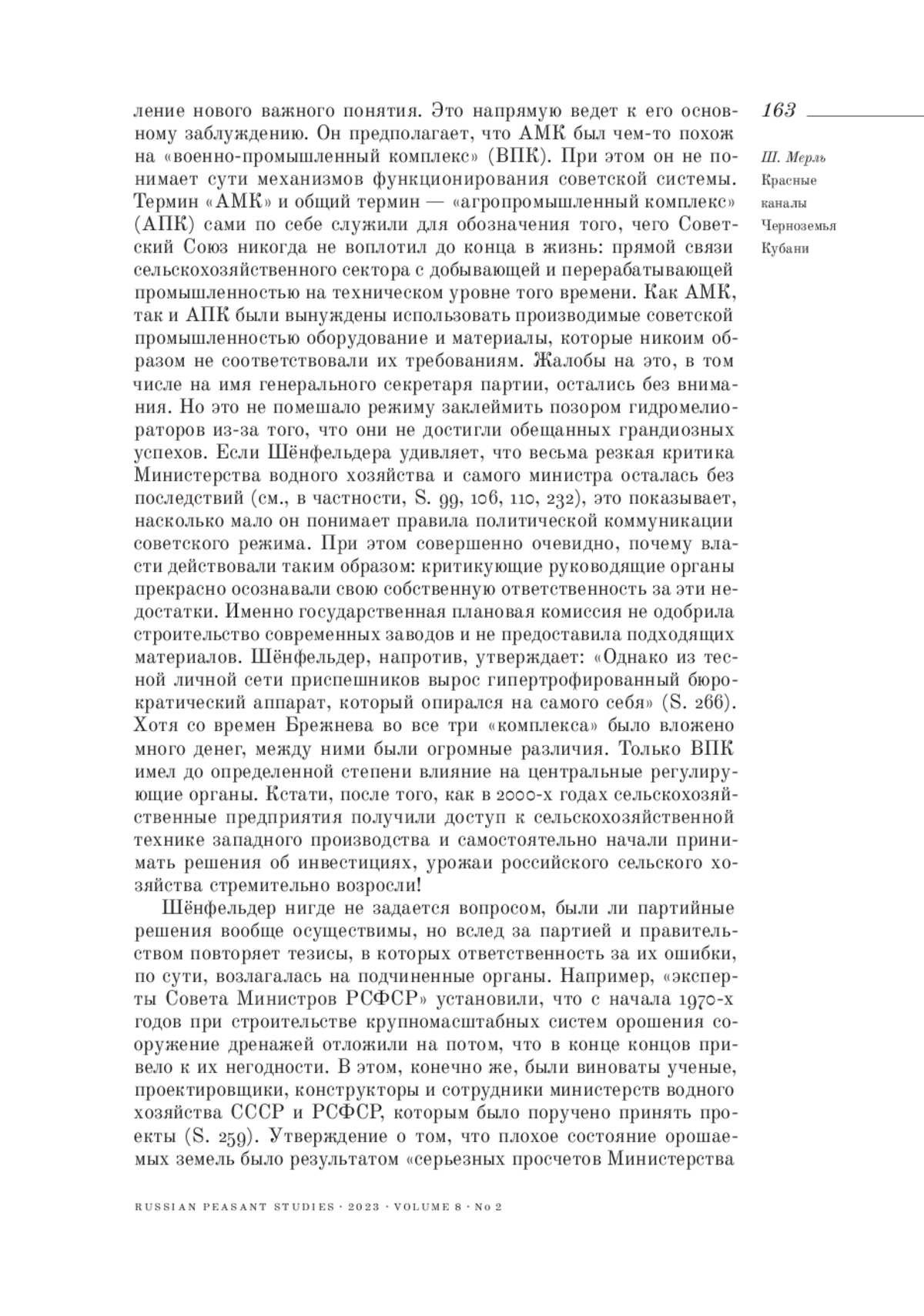 Review of the book: Schönfelder T., Fluss R., Erde S. Der Kuban und der agromeliorative Komplex. Eine sowjetische Umwelt- und Technikgeschichte 1929-1991. (Geschichte der technischen Kultur, Bd. 14), Brill Schöningh: Paderborn, 2022, XI + 324 s.