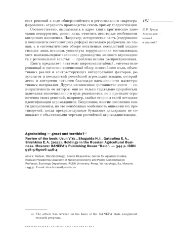 Review of the book: Uzun V. Ya., Shagaida N. I., Gataulina E. A., Shishkina E. A. (2022). Holdings in the Russian Agricultural Business. Moscow: RANEPA’s Publishing House “Delo”. - 344 p. ISBN 978-5-85006-446-4.