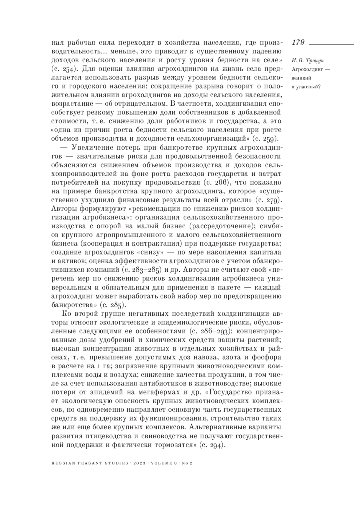 10. Троцук И. В. (2022). Новый взгляд на старые проблемы российской периферии // Крестьяноведение. Т. 7. № 1. С. 220-238. EDN: FZFTCS