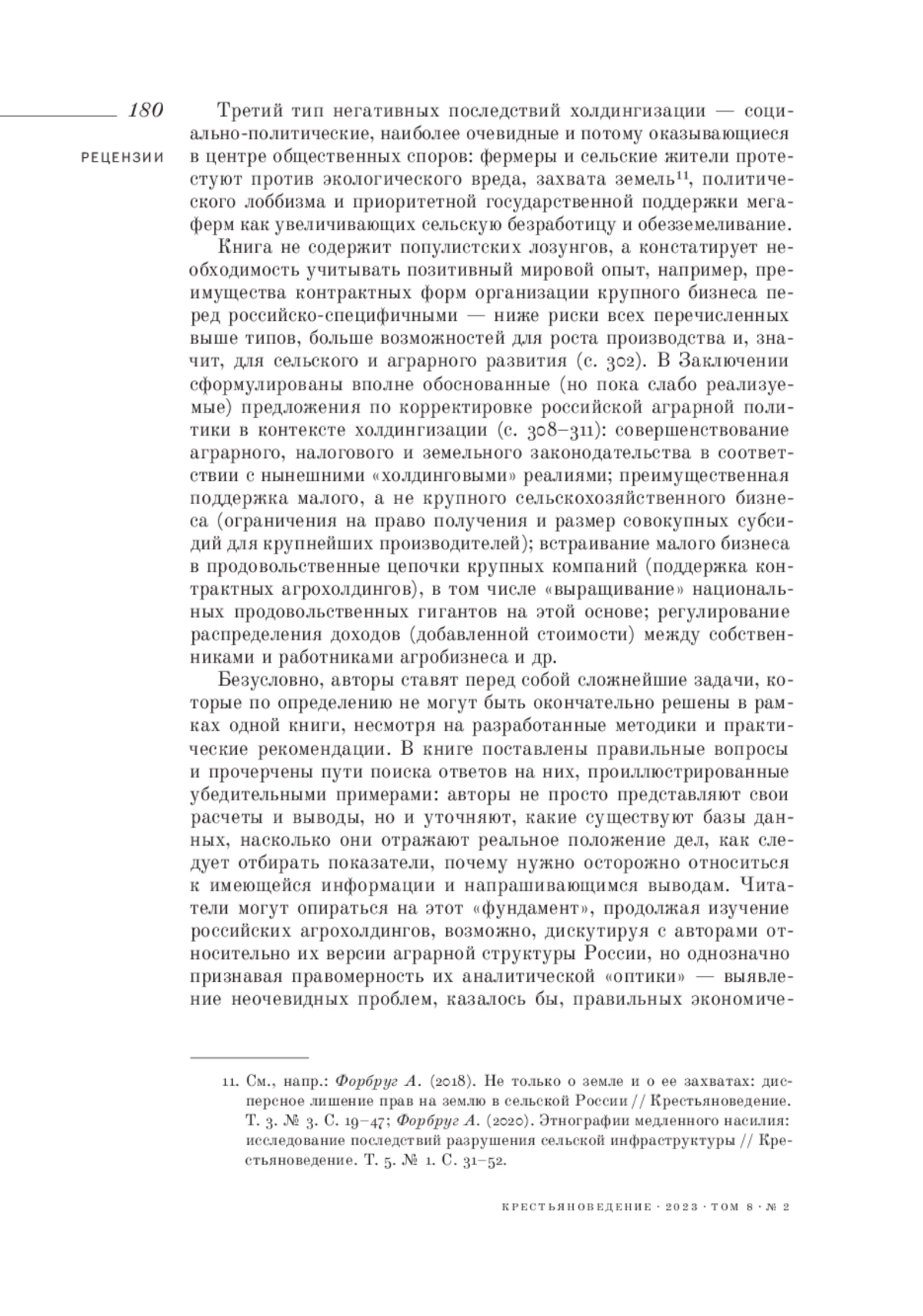 11. Форбруг А. (2018). Не только о земле и о ее захватах: дисперсное лишение прав на землю в сельской России // Крестьяноведение. Т. 3. № 3. С. 19-47. EDN: YMMJZB