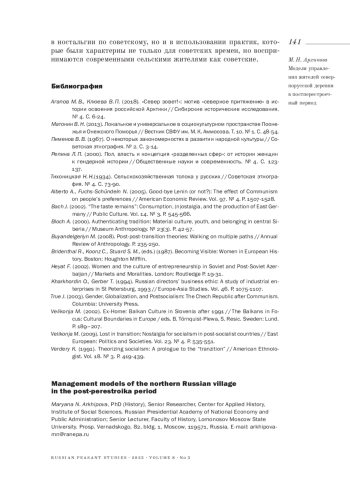 Статья посвящена управленческим практикам жителей севернорусских деревень в постперестроечный период. На примере полевого этнологического материала автора были рассмотрены практики руководителей сельских администраций одного из районов Архангельской области. В качестве источника использованы этнографические интервью с жителями деревень Архангельской области, которые с 1990-х годов занимали или продолжают занимать руководящие должности в сельских администрациях. Как показали эти интервью, многие из жителей деревень Русского Севера с ностальгией вспоминают советские годы, наделяя это время особыми признаками, такими как «стабильность», «коллективизм», «взаимопомощь», «уверенность в будущем». Автор приходит к выводу о наличии некоторой корреляции между гендерной принадлежностью руководителя и теми моделями управления, которые он выбирает. Так, женщины в своей работе чаще апеллируют к принципам коллективизма и взаимопомощи, они акцентируют внимание на помощи тем, кого считают наиболее уязвимыми категориями населения в своих деревнях (безработные, матери-одиночки и проч.). Мужчины-управленцы выбирают иную модель работы: зачастую используют административный ресурс, подключают личные связи, при этом редко упоминают социальную помощь нуждающимся односельчанам. Исследование показало, что в постсоветской деревне произошел своеобразный симбиоз нескольких управленческих моделей, которые имеют гендерные особенности в своей реализации на практике.