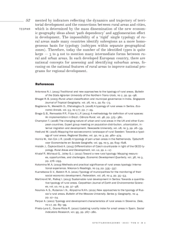 1. Antonova N. I. (2015) Traditional and new approaches to the typology of rural areas. Bulletin of the State Agrarian University of the Northern Trans-Urals, no 2, pp. 91-96. EDN: UYYQWX