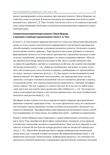 Статья: РЕПРЕЗЕНТАЦИЯ КОНЦЕПТА NATURE/ПРИРОДА В ОРИГИНАЛЕ И РУССКОЯЗЫЧНОМ ПЕРЕВОДЕ ТРАКТАТА Г. Д. ТОРО «УОЛДЕН, ИЛИ ЖИЗНЬ В ЛЕСУ» (2025)
