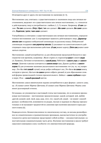 3. Закирьянов К. З. Научные основы школьного предмета “Русский язык” (к формированию лингвистической компетенции учащихся): монография. Уфа: ИРО РБ, 2015. Глава 4, раздел “Местоимение”. С. 113-121.