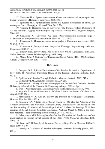14. Матявина А.Е. Художественный авангард и образ культуры XX века: автореферат дис.. канд. филос. наук: 09.00.13. Москва, 2004. 19 с. URL: https://viewer.rsl.ru/ru/rsl01003243474?page=1&rotate=0&theme=white (дата обращения 14.01.2025 г.).