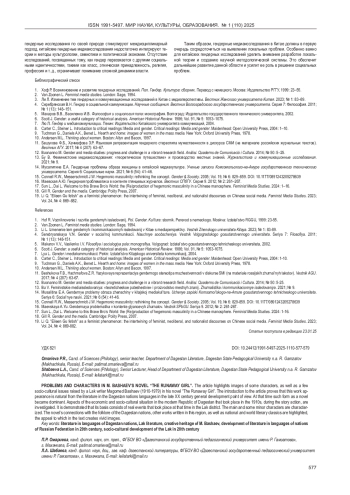 14. Мусалитина Е.А. Гендерные проблемы образа женщины в китайской медиакультуре. Ученые записки Комсомольского-на-Амуре государственного технического университета. Серия 6: Социальные науки. 2021; № 6 (54): 41-46. EDN: GBYVTA
