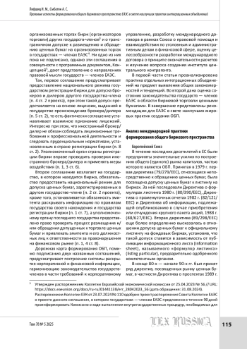 4. Касьянов Р. А. Критический анализ международного опыта в контексте решения задачи по формированию наднационального органа ЕАЭС по регулированию финансового рынка // Журнал российского права. 2024. Т. 28. № 6. С. 110-122.