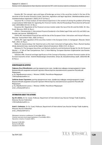 11. Lifshits I., Ponamorenko V. International Financial Standards in the Global Legal Order and in EU and EAEU Law // Russian Law Journal. 2020. No. 8 (3). P. 4-31.