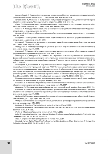 4. Виноградова В. С. Правовой статус полиции в современной России: теоретико-инструментальный и сравнительный анализ : автореф. дис. … канд. юрид. наук. Краснодар, 2014.