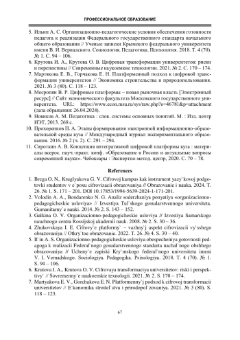4. Жуковская И. Е. Цифровые платформы - важный аспект цифровизации высшего образования // Открытое образование. 2022. Т. 26. № 4. С. 30 - 40.