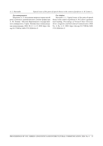 9. Шарандин А. Л. Учение В. В. Виноградова о структурно-семантических типах слов: методологический характер и перспективы его реализации в русистике // Горизонты современной русистики. М.: ГИРЯ им. А. С. Пушкина, 2020. С. 695-702.