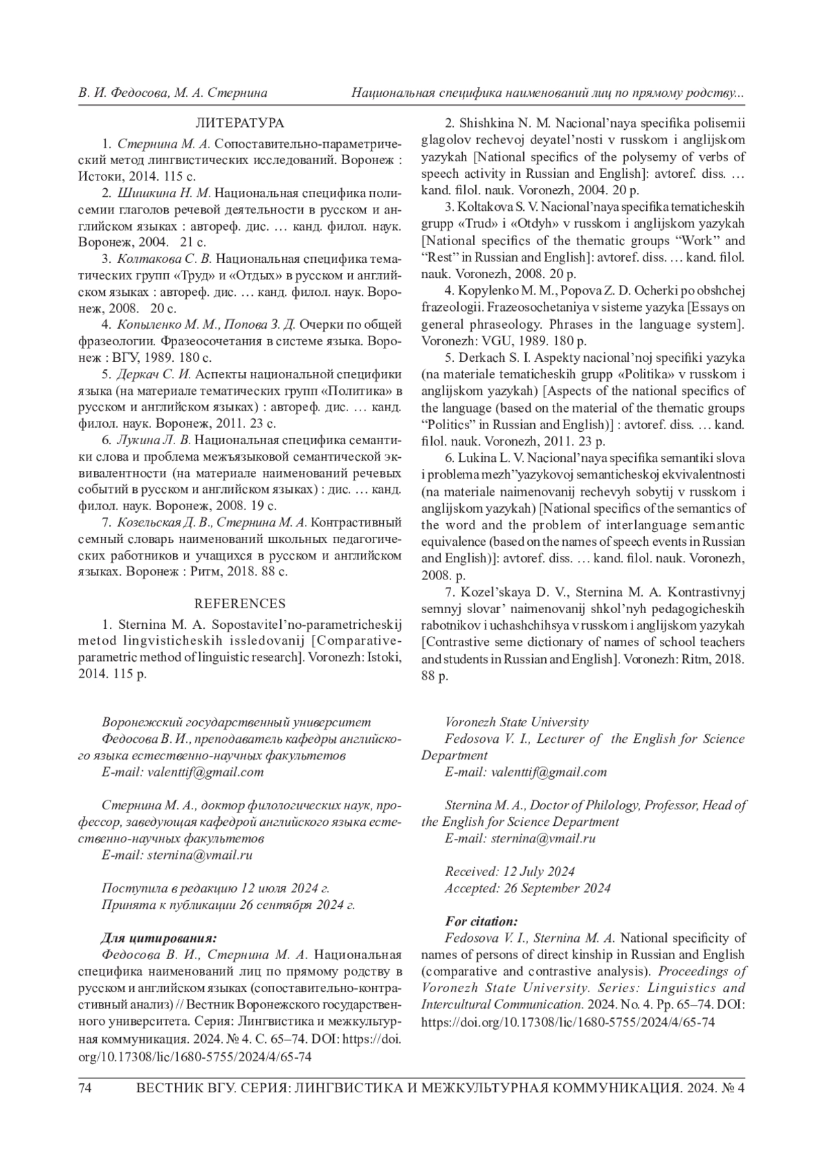 1. Стернина М. А. Сопоставительно-параметрический метод лингвистических исследований. Воронеж: Истоки, 2014. 115 с. EDN: TEGJAV