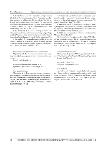 6. Карпенко И. С. Национальная специфика семантем русской и английской адъективной лексики: дис.. канд. филол. наук. Воронеж, 2022. 324 с. EDN: RHSXCU