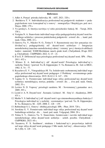 14. Сорокина Г. В. Формирование индивидуального стиля профессиональной деятельности будущего учителя : дис. … канд. пед. наук. Волгоград, 2004. 20 с.