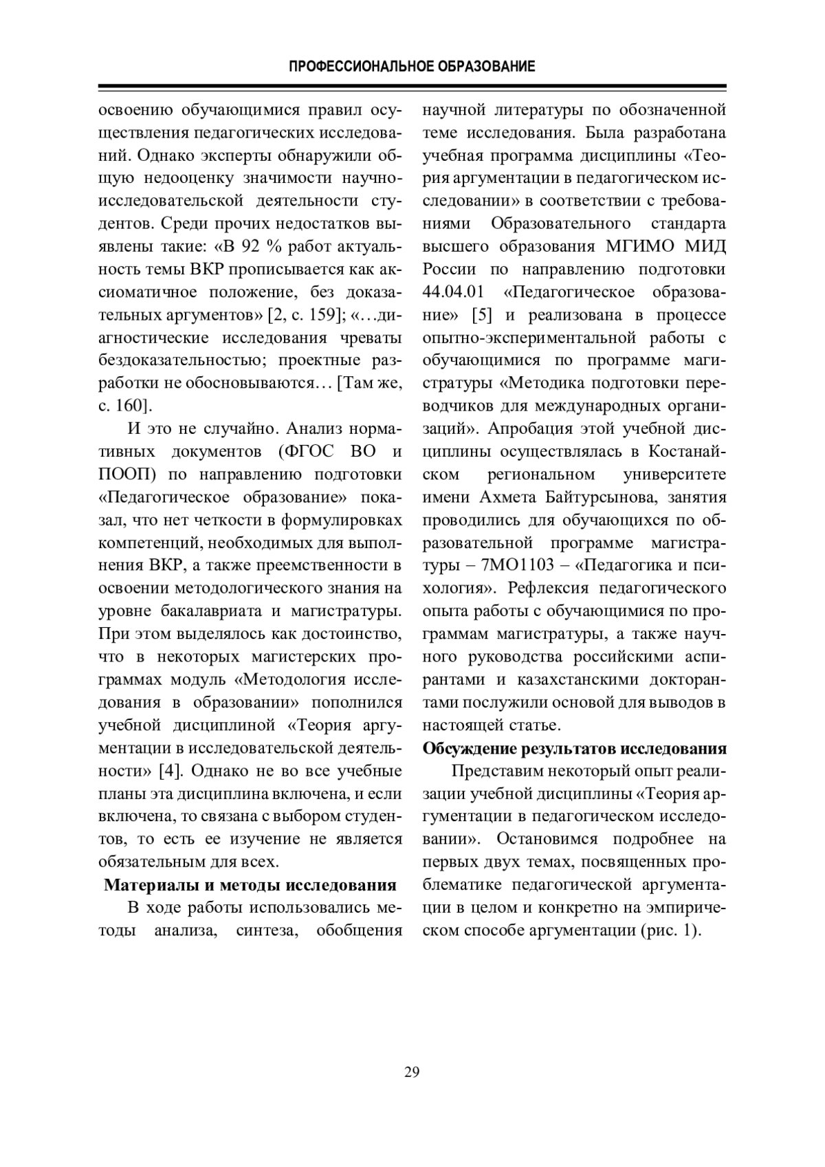 Авторы статьи обращаются к актуальной проблеме, недостаточно решенной в педагогике и вызывающей дискуссии ученых, – это проблема доказательства и аргументации. Они представляют часть своего практического опыта формирования умения аргументировать у обучающихся по магистерским программам. Показаны условия, которые помогают молодым исследователям в овладении знаниями о приемах эмпирической и квазиэмпирической аргументации, а также об особенностях их применения в прикладном педагогическом исследовании.