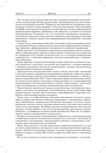 Статья посвящена исследованию межнациональных и межрелигиозных отношений, а также их роли в провоцировании конфликтов. Анализируется важность эффективной национальной политики для обеспечения государственной безопасности, особенно в условиях многонационального и многоконфессионального общества, характерного для России. Рассматриваются ключевые факторы, способствующие возникновению этнических конфликтов, включая когнитивно-психологические катализаторы, такие как нежелание мигрантов интегрироваться в новое общество и предвзятое отношение местного населения к иностранцам. Обсуждается роль диаспор, их положительные и отрицательные аспекты, а также значение справедливого правосудия в урегулировании конфликтов.