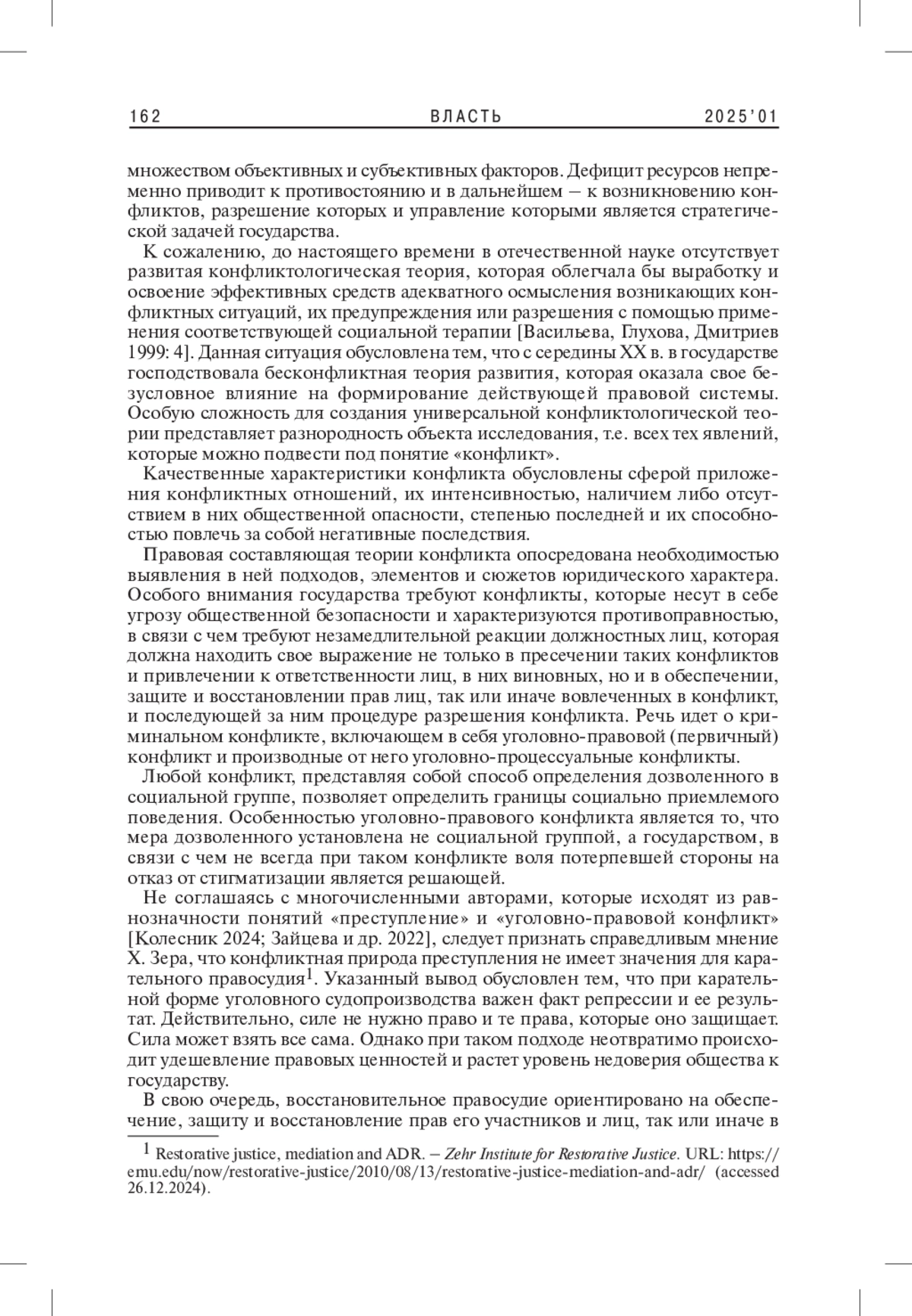 5. Харзинова В.М. 2019. Некоторые особенности изучения криминального конфликта в уголовном процессе. - Пробелы в российском законодательстве. Вып. 2. С. 184-185. EDN: QOMESY