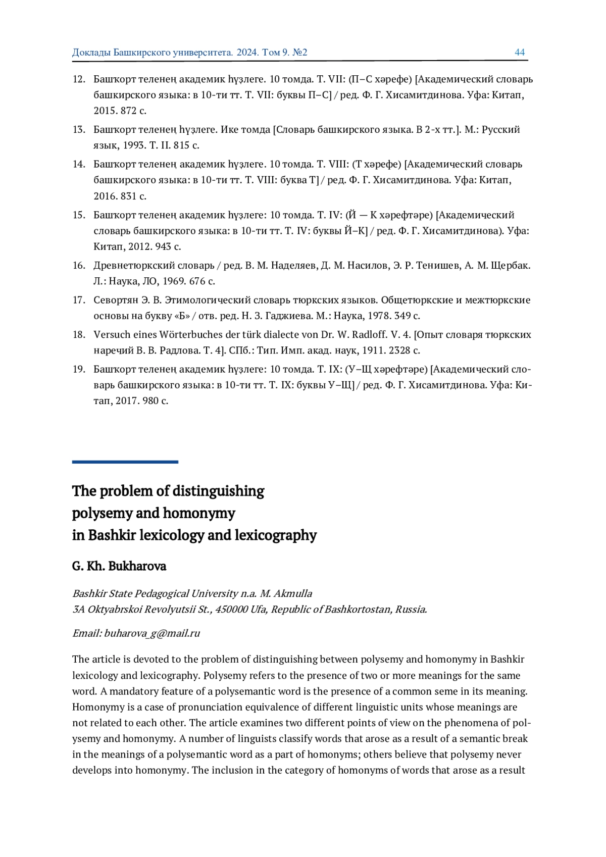 4. Суфиянова Н. Ф. Проблема многозначности в башкирском языке и ее лекикографическая разработка. Уфа: Гилем, 1998. 102 c.
