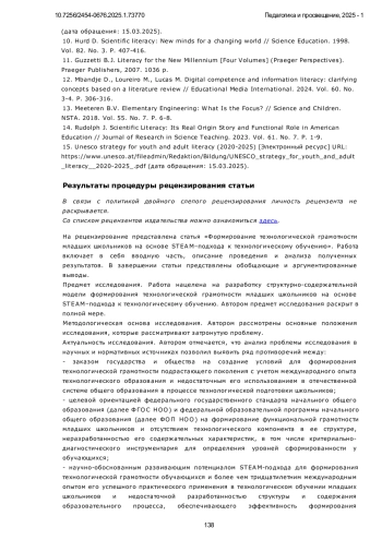 2. Рудской А.И., Боровков А.И., Романов П.И., Киселёва К.Н. Анализ опыта США и Великобритании в развитии STEM-образования // Научно-технические ведомости СПбПУ. Естественные и инженерные науки. 2017. Т. 23. № 2. С. 7-16. DOI: 10.18721/JEST.230201