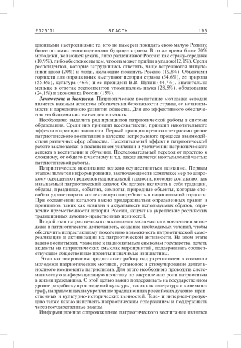 7. Парма Р.В. 2024. Продвижение патриотической повестки в социальных медиа среди российской студенческой молодежи. - Высшее образование в России. Т. 33. № 1. С. 44-67. EDN: LLCBSO