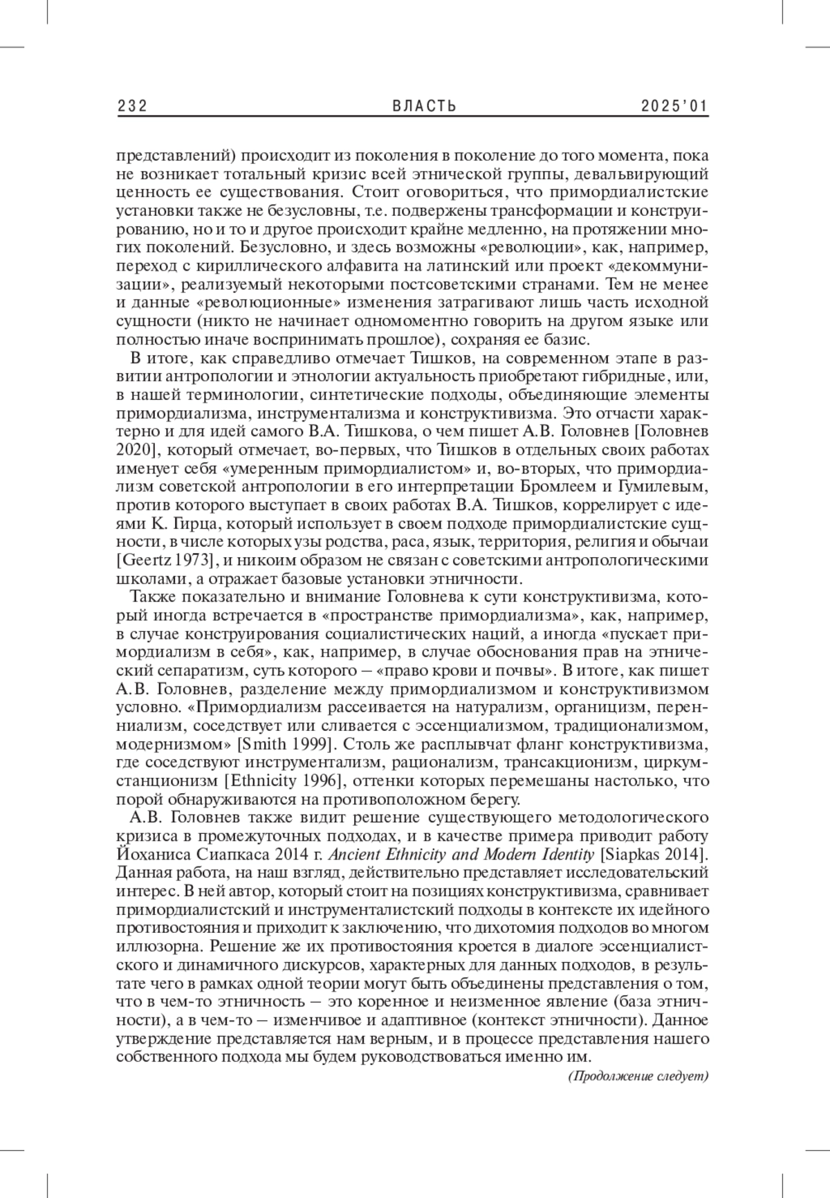 1. Головнев А.В. 2020. О напряжении и движении. Комм. к ст.: В.А. Тишков. Откуда и куда пришла российская этнология. - Этнографическое обозрение. № 2. С. 109-112.