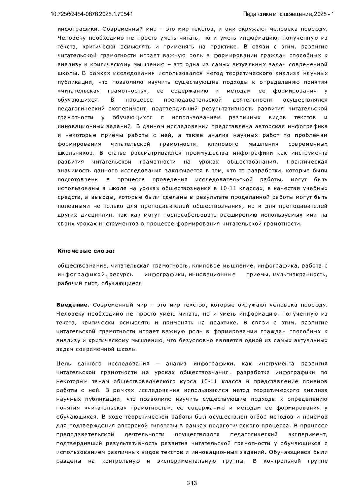 15. Вологодская О. В., Ожмекова Н. Ю. Использование инфографики на уроках географии как одно из средств формирования читательской грамотности // Вестник науки. 2023. № 5 (62). С. 247-257.