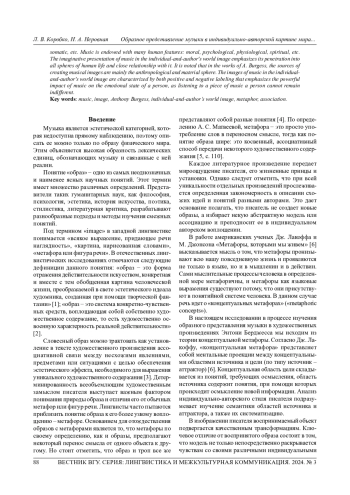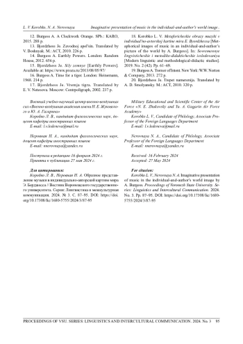 18. Коробко Л. В. Метафорические образы музыки в индивидуально-авторской картине мира Э. Берджесса // Современные лингвистические и методико-дидактические исследования. 2019. № 2 (42). С. 61-69.
