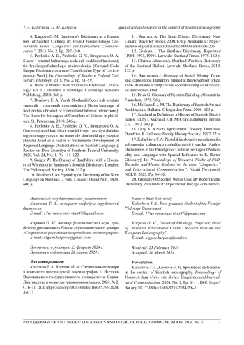 Статья: СПЕЦИАЛЬНЫЕ СЛОВАРИ В КОНТЕКСТЕ ШОТЛАНДСКОЙ ЛЕКСИКОГРАФИИ (2024)