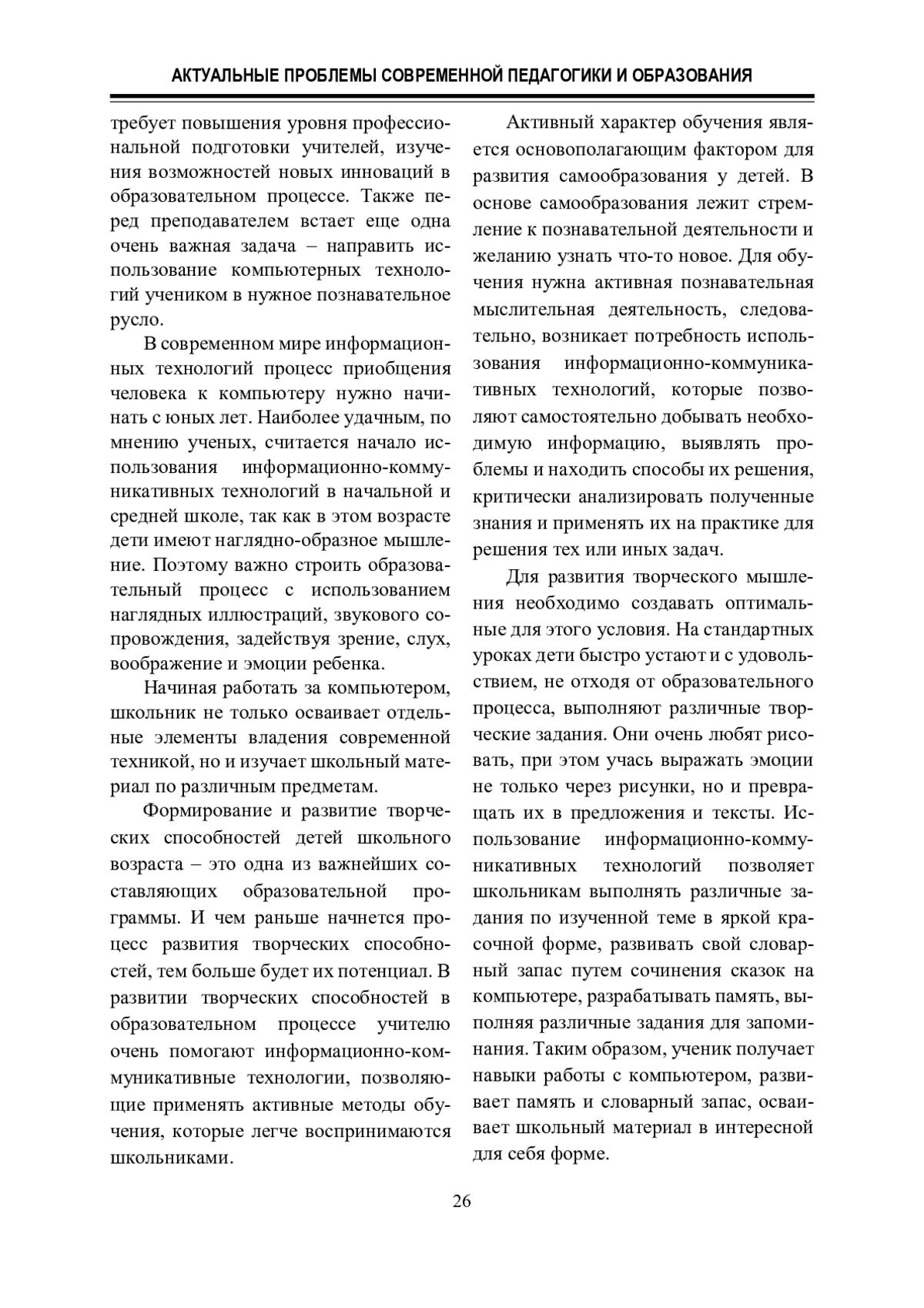 1. Кудрань В. А. Специфика развития творческих способностей подростков в условиях применения информационных технологий // Педагогический журнал. 2019. Т. 9. № 1-1. С. 290 - 298.