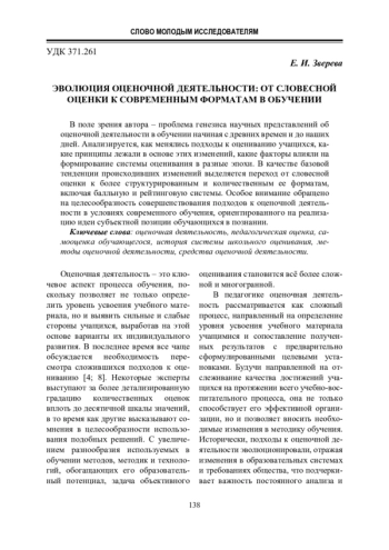 8. Куранова Т. Д., Скорикова И. Б. Современные подходы к оценке достижений младших школьников // Наука и образование сегодня. 2021. № 9 (68). С. 12 - 18.
