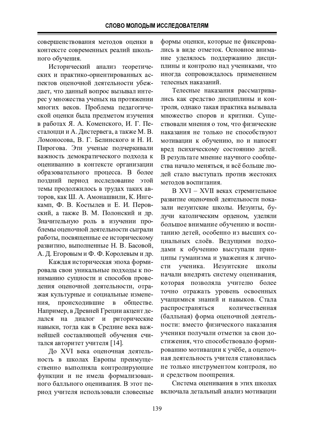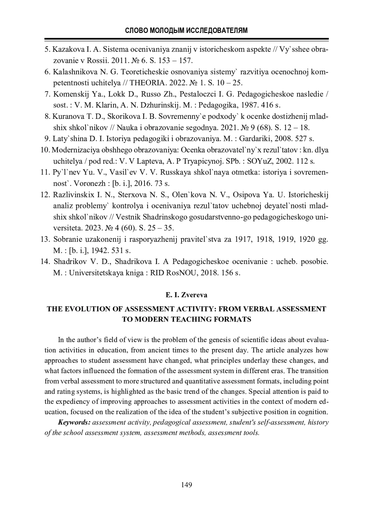 5. Казакова И. А. Система оценивания знаний в историческом аспекте // Высшее образование в России. 2011. № 6. С. 153 - 157.