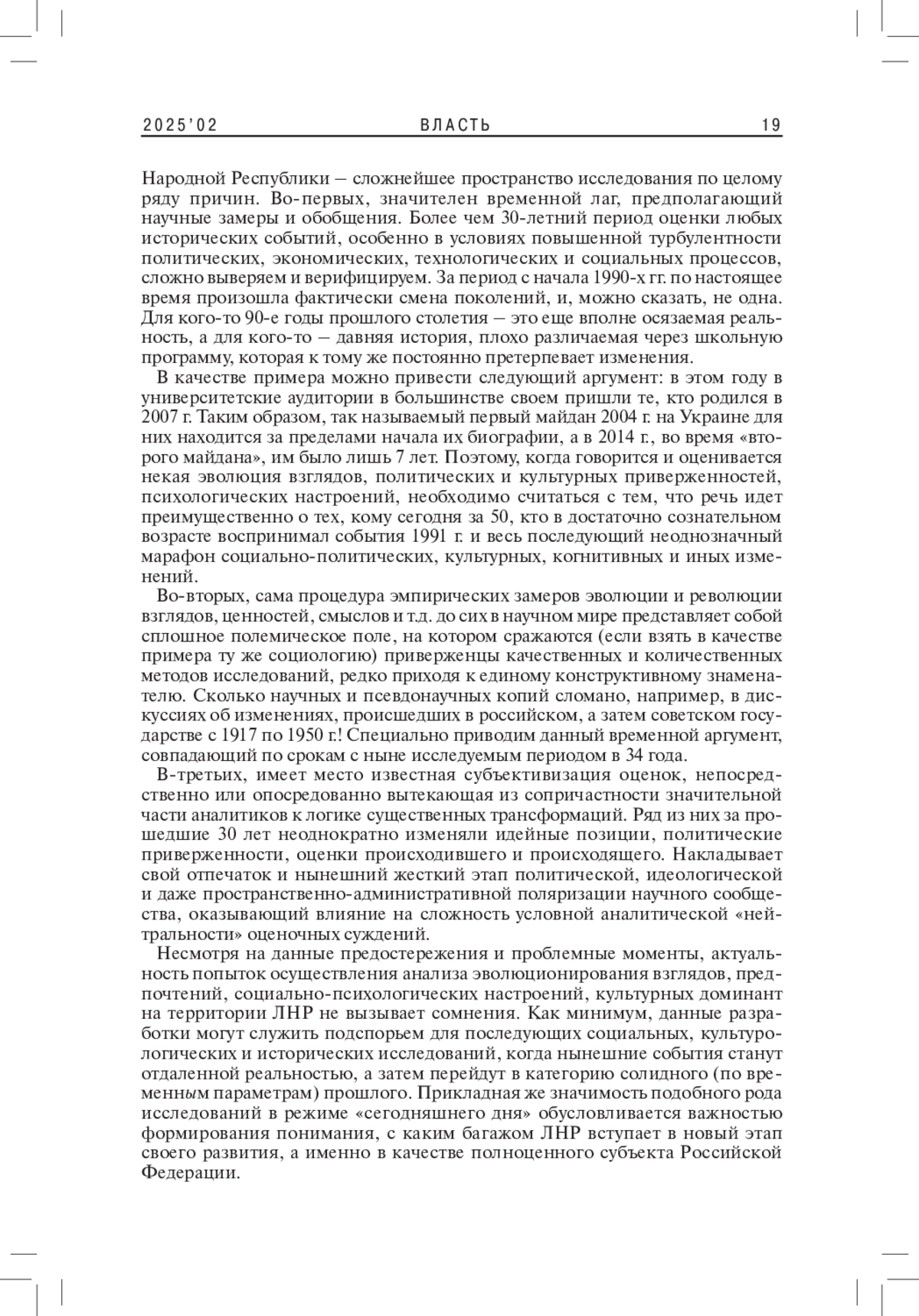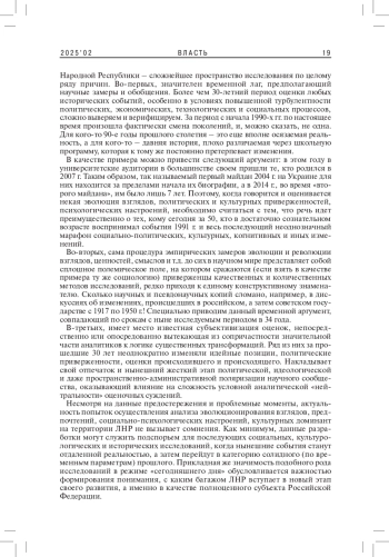 Анализ эволюции социально-политических, социокультурных и тем более социально-психологических констант жителей современной Луганской Народной Республики – сложнейшее пространство исследования по целому ряду причин. Во-первых, значителен временной лаг, предполагающий научные замеры и обобщения.