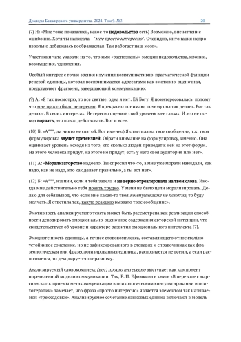Рассмотрены интердискурсивные факторы декодирования эмотивного содержания речевой единицы на материале фрагмента коммуникации в закрытом чате, где в обсуждении были объективированы результаты декодирования. Прогнозирование результатов декодирования смысловой структуры единицы на основе знаний об актуальных для современных носителей лингвокультуры коннотациях представляется более эффективным с точки зрения лингвопрагматики.
