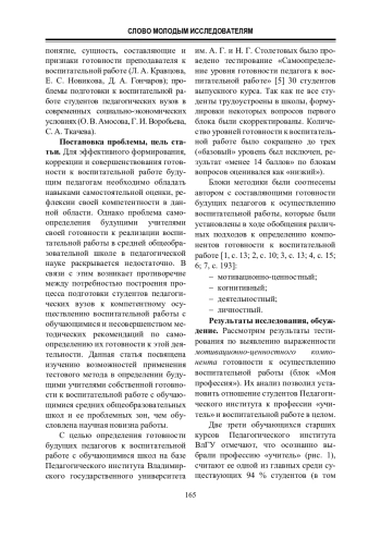 2. Кравцова Л. А. Формирование готовности студентов к организации воспитательной работы : на примере педагогического вуза : автореф. дис. ... канд. пед. наук : 13.00.08. Махачкала : Дагест. гос. пед. ун-т, 2007. 18 с.