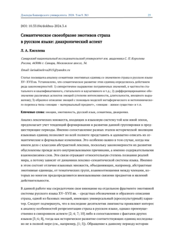 3. Булатова А. М. Лексико-фразеологические средства репрезентации эмоционального концепта страх в немецком и русском языках: автореф. дис. … канд. филол. наук. Казань, 2015. 23 с. EDN: ZPNYXT