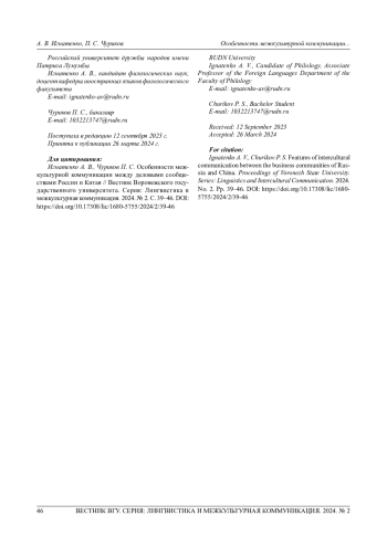 17. Ли Я. Межкультурная русско-китайская бизнес-коммуникация: лингвистические и культурные аспекты // Человек. Культура. Образование. Сыктывкар, 2023. № 1 (47). С. 26-37.