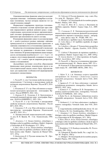 1. Рылов Ю. А. и др. Системные свойства испанских антропонимов // Системные и дискурсивные свойства испанских антропонимов. Воронеж: Изд-во ВГУ, 2010. С. 5-99. EDN: RUEYQN